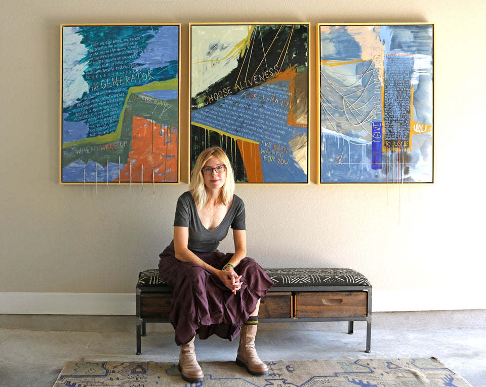 Welcome to a place where abstract art connects through the senses and the soul, where layers and symbolism convey messages in mindfulness. I'm Julie, a mixed-media multidisciplinary artist creating collections, each with its own conceptual theme and executional style. My practice also includes exhibitions, prints, wallpaper design, as well as corporate & residential commissions ranging from private nurseries to the walls of Mandalay Bay Convention Center. Enjoy browsing, feel free to sign up for my monthly newsletter for early access, or contact me at hello@juliepelaezstudios.com for questions or collaborations.