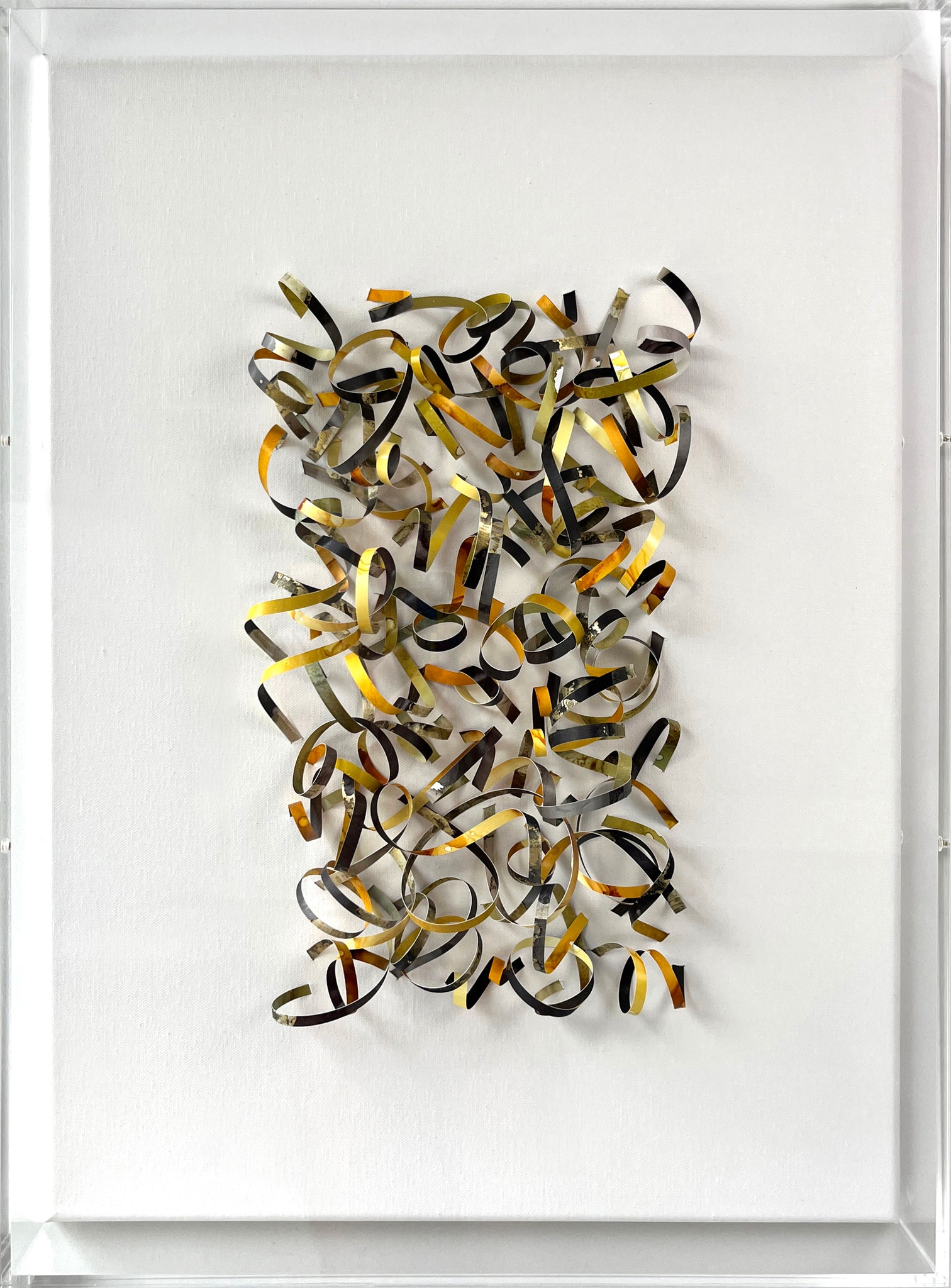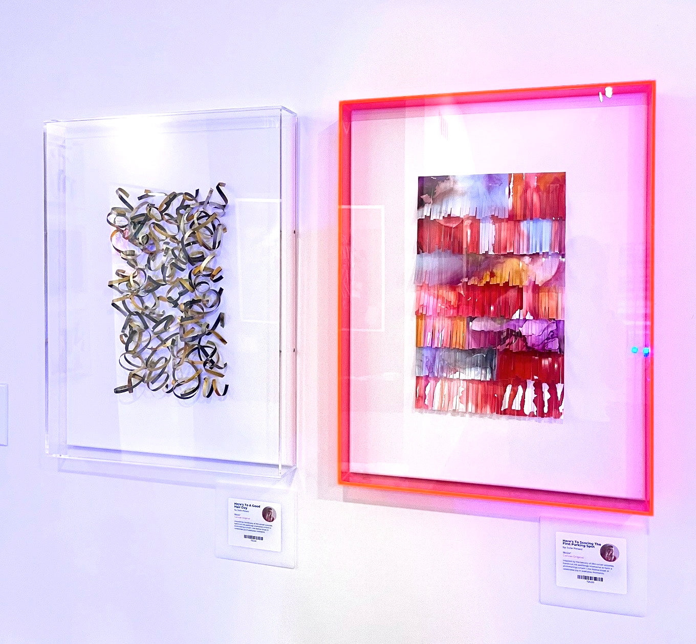 Celebrate your everyday "yays"! This 18" x 24" x 3" 3D original artwork is inspired by the importance of bringing attention to our daily wins, however small. Hand-cut ink paintings are shaped and collaged together to create festive visuals, mounted on stretched canvas and housed in a plexiglass shadowbox frame. Wired and ready to hang.